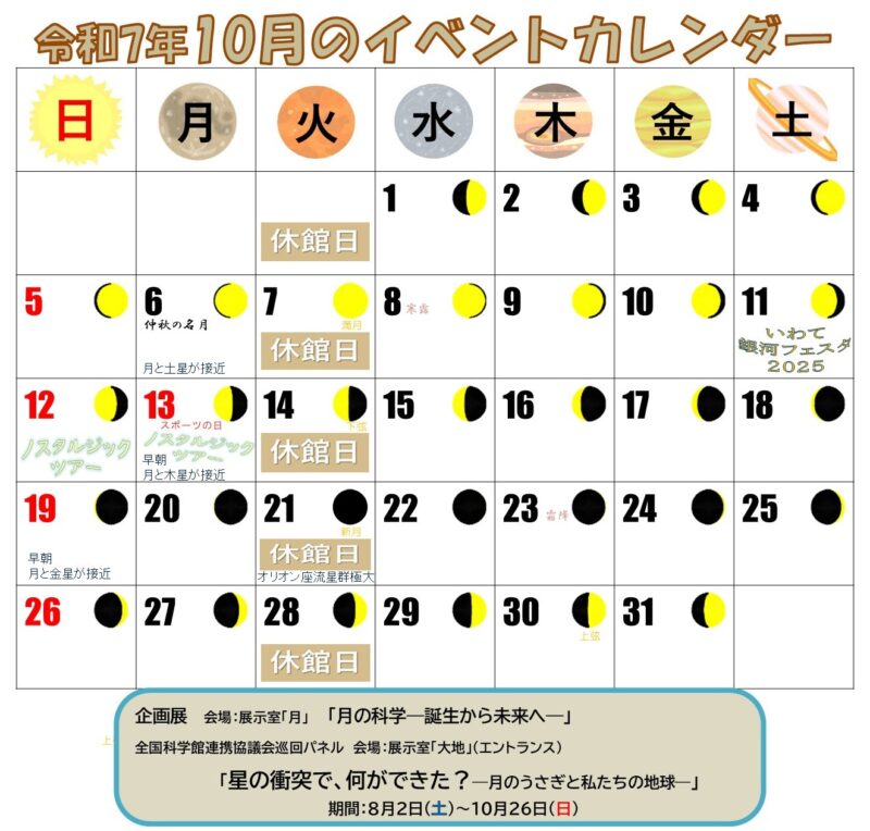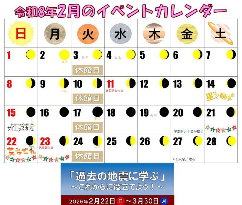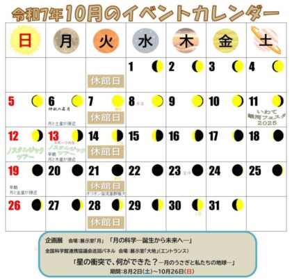 『イベントカレンダー』は、奥州宇宙遊学館で行うイベント等の予定を紹介しています。