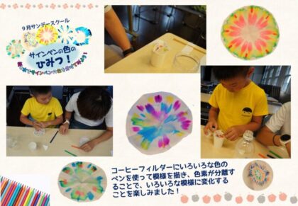 9月サンデースクール「サインペンの色のひみつ!~紙と水でサインペンの色を分けてみよう!~」