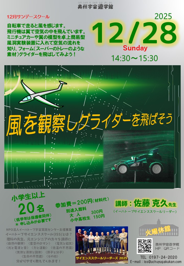 12月サンデースクール「風を観察しグライダーを飛ばそう」